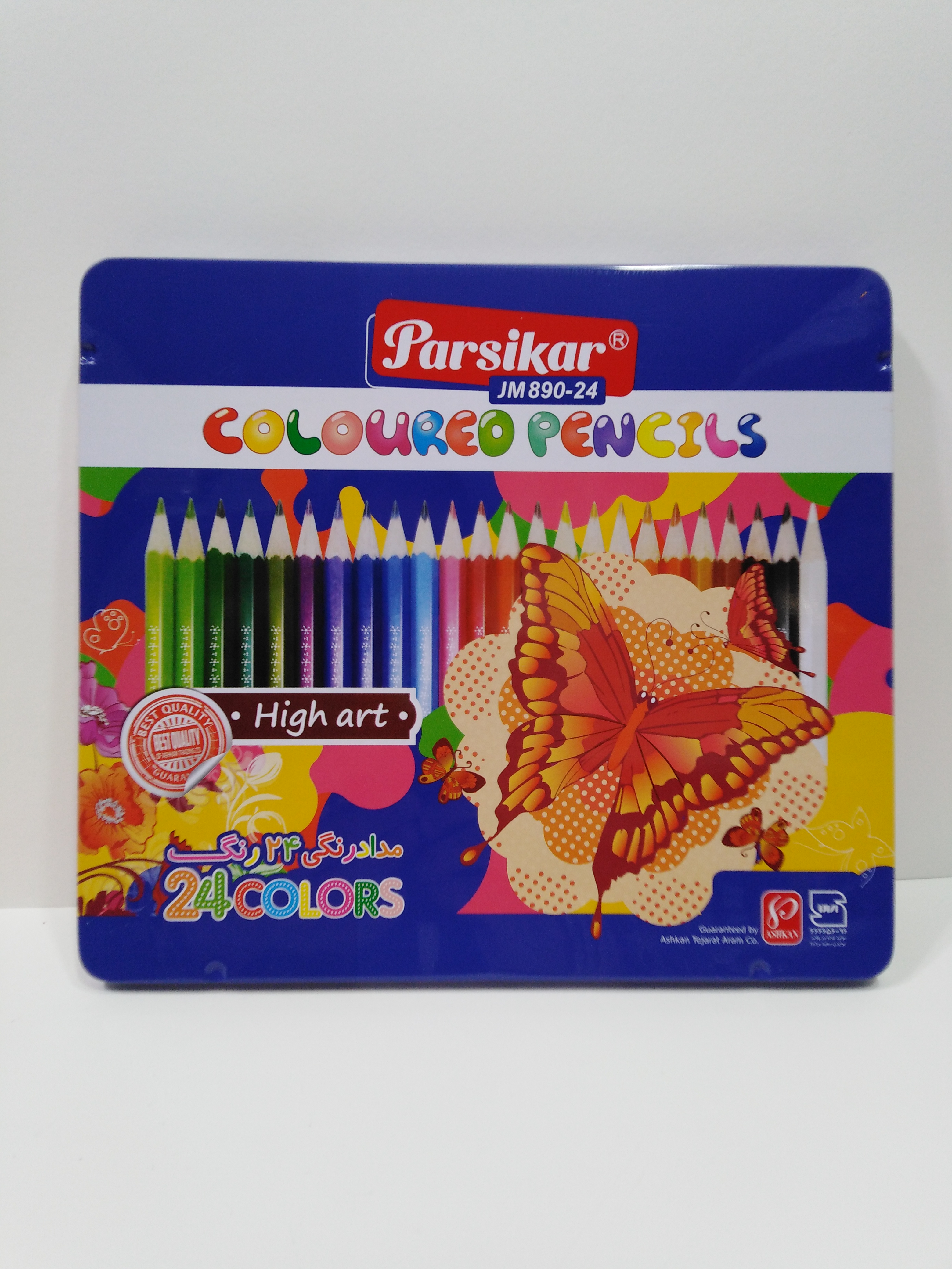 مدادرنگی 24 رنگ جعبه فلزی تخت پارسیکار